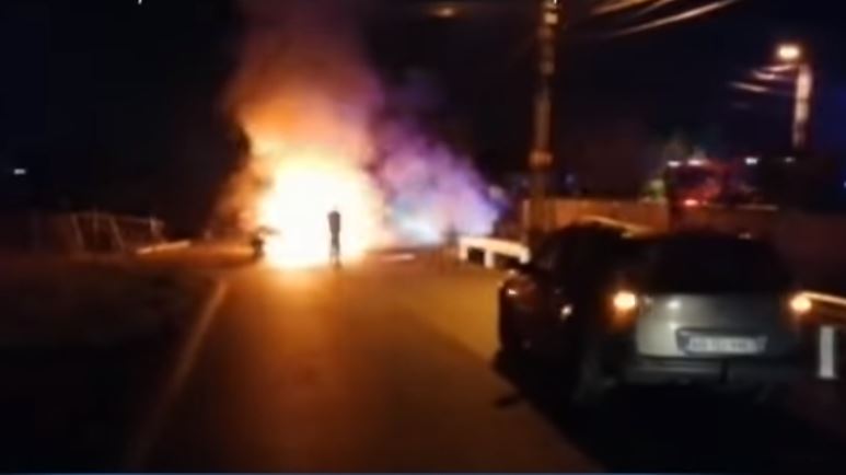 Mașina de poliție a luat foc, iar Andrei și prietenii săi au fost pe fază în momentul accidentului și au sărit numaidecât în ajutorul oamenilor legii.