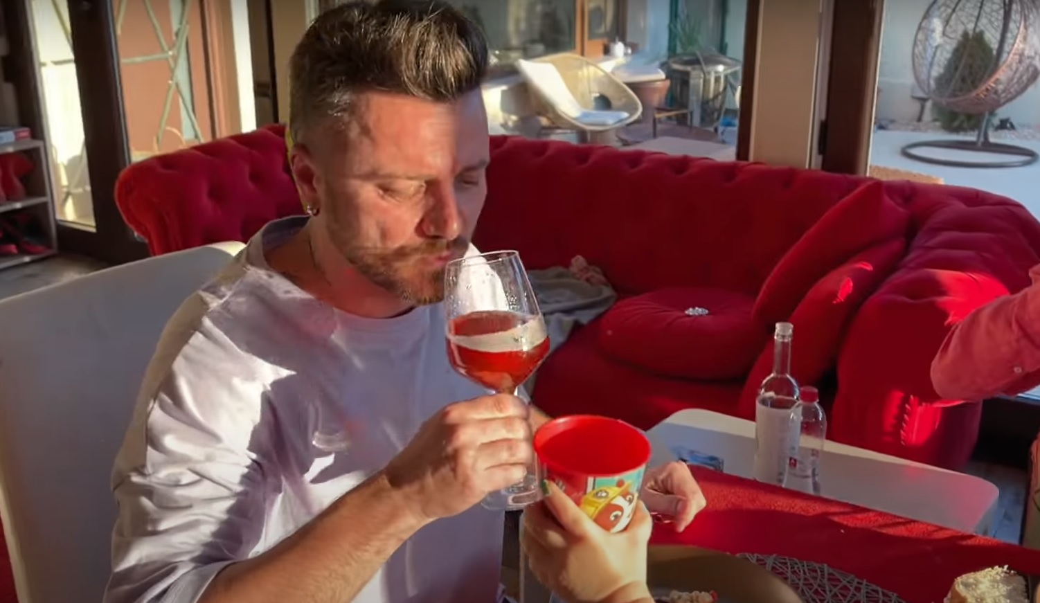 „Ne punem la masă și o să îmi găsesc și eu salata de beouf! De când o aștept! Țineți-mi pumnii”, a spus Tavi Clonda, înainte să mănânce din salata făcută de soția lui.