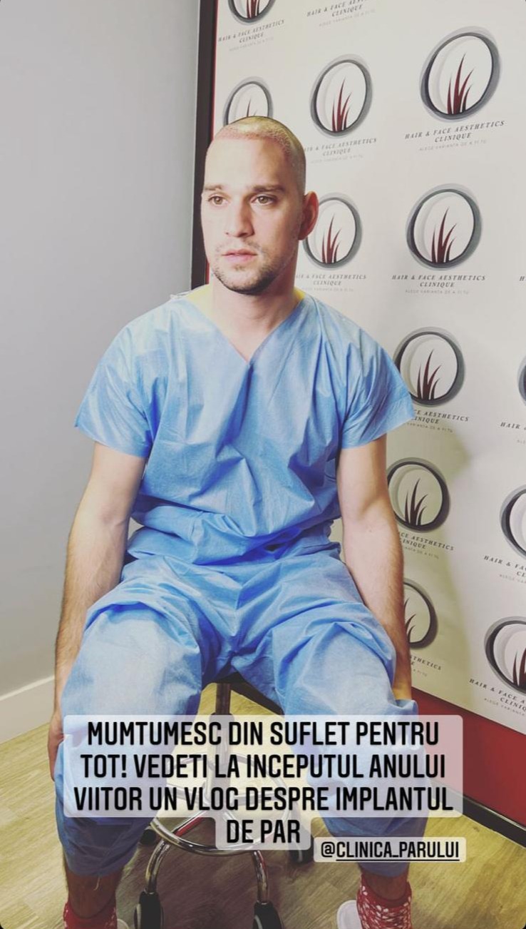 „Mulțumesc din suflet pentru tot! Vedeți la începutul anunlui viitor un vlog despre implantul de păr”, a fost mesajul actorului, imediat după intervența suferită.