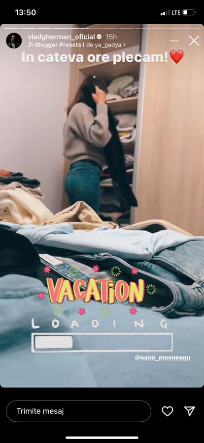 Încă de la primele ore ale dimineții, Oana Moșneagu le-a arătat fanilor ei că este foarte entuziasmată de noua vacanță. S-a filmat alături de Vlad Gherman în aeroport, ambii afișând un zâmbet larg, semn că au foarte mari așteptări de la această vacanță, mai ales că vor avea timp doar pentru ei.
