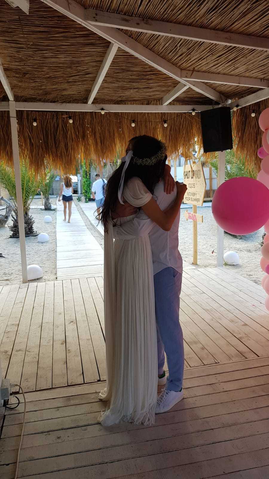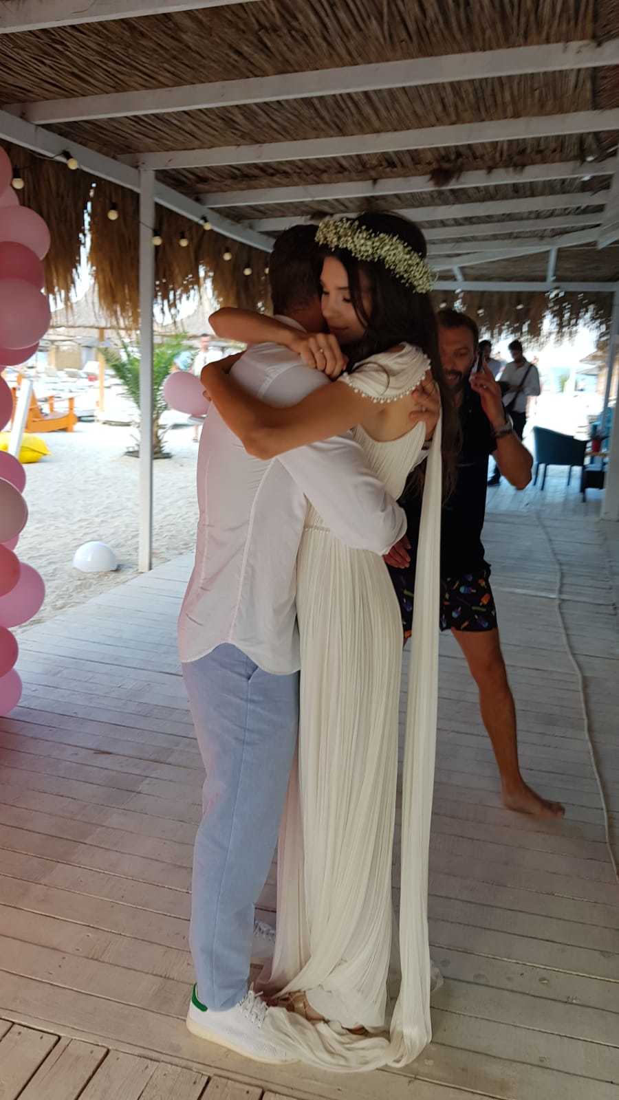 Cei doi si-au organizat nunta pe plaja, exact asa cum si-au dorit si au ales tinute lejere, in care sa se poata distra in voie. Alice poarta o rochie superba si cei doi indragostiti par mai fericiti ca niciodata.