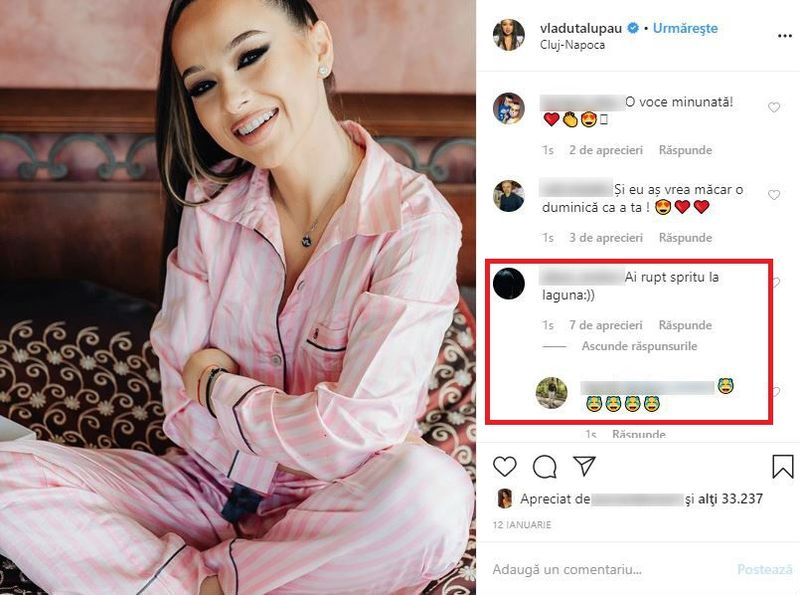 Vlăduța Lupău a cântat luna aceasta la o petrecere, în Făgăraș. A doua zi după eveniment, cântăreața a publicat pe pagina ei o fotografie în care apărea în pijamale. „Duminica mea. 💕”, a scris ea în dreptul imaginii.