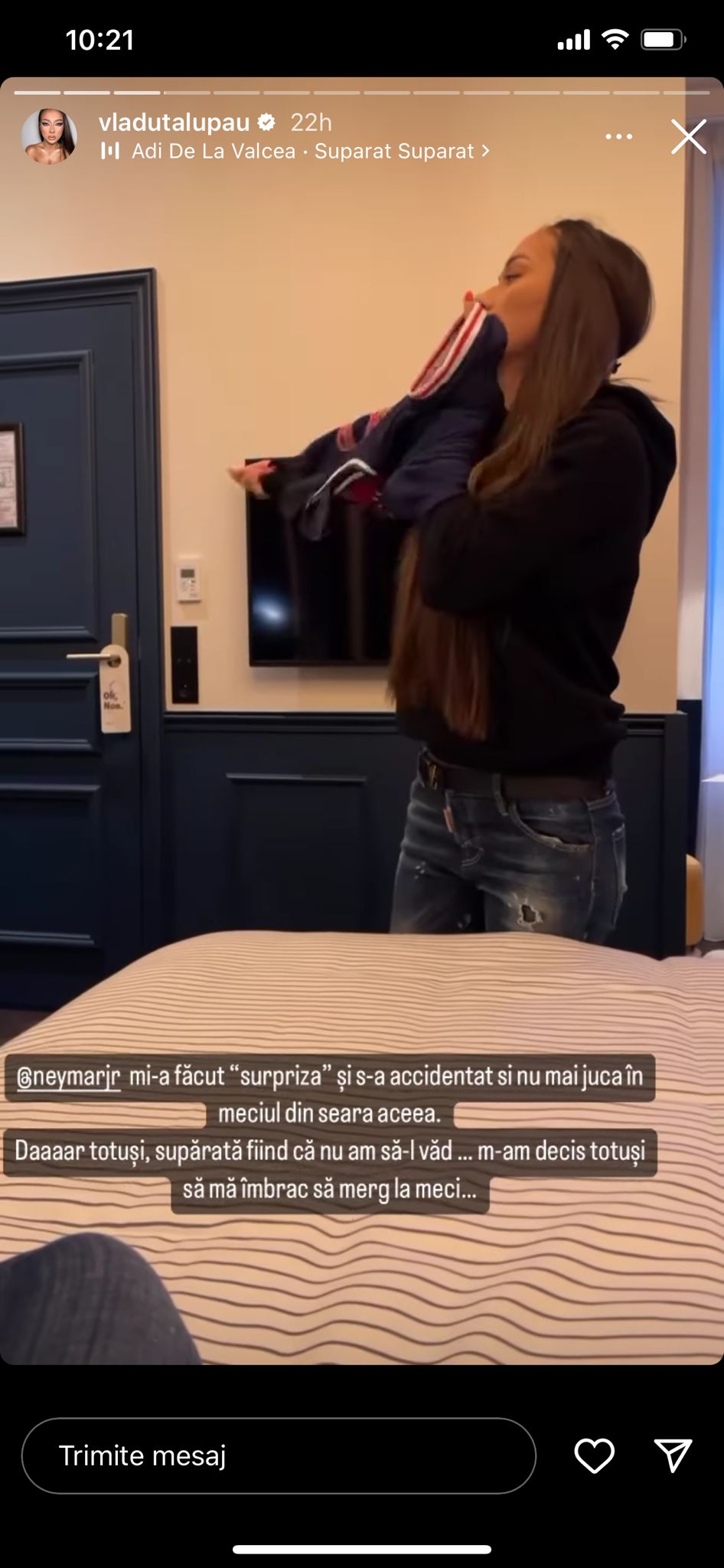 Rețelele de socializare i-au adus aminte Vlăduței Lupău că fix cu un an în urmă avea să se întânească cu unul dintre oamenii pe care îi admiră cel mai mult, jucătorul de fotbal Neymar. Artista și-a adus cu drag aminte de momentul special, declarând și acum că a fost foarte fericită în acea zi, mai ales că fix înainte de meci a avut parte de o veste care a întristat-o, și anume că, din cauza unei accidentări, fotbalistul avea să nu mai intre pe teren, la meciul pentru care ea a depus eforturi substanțiale să ajungă.