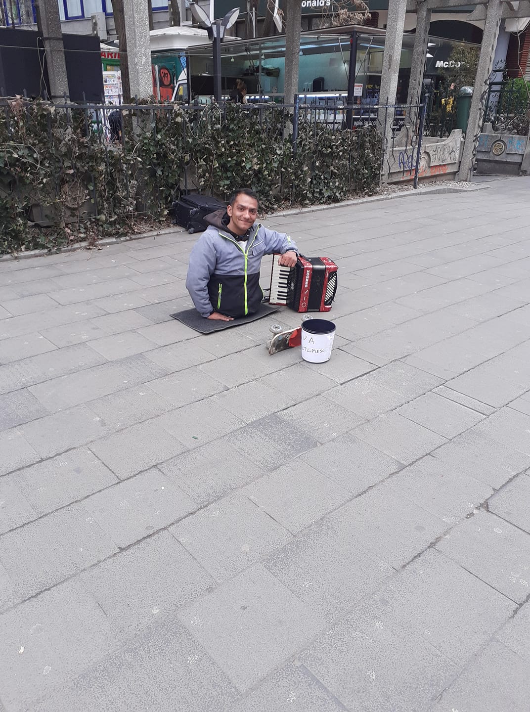 ”Nu pot să-mi mai pun picioare… Ăsta e prea de sus (tăiat, n.r.) iar ăsta e prea mic, nu intră nimic pe el. Nu există proteză! Acum nu-mi dă nimeni bani, mă întrețin singur. Nu-mi place în cărucior, eu umblu cu rotila, e mai simplu cu rotila (Viorel folosește un skateboard, n.r.)”, a mai spus Viorel Dinu.
