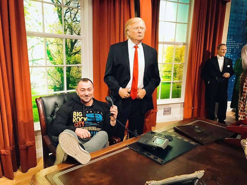 "Vraciul Denisei” a fost impresionat de statuia de ceara a lui Donald Trump, la biroul caruia s-a fotografiat, dar si de familia regala, pozandu-se intre Regina Elisabeta si Kate Middleton, sotia printului William.