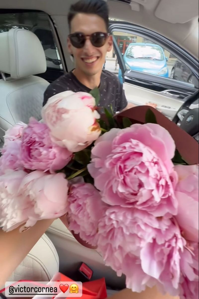 Ei bine, surpriza nu a întârziat să apară, iar Victor Cornea a venit cu un buchet imens de bujori pentru Andreea Bălan, făcându-le fericite și pe micuțe, asta pentru că și lor le-a luat câte o floare.