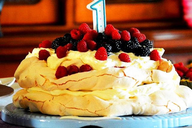 Observaţie: În mod obişnuit, frişca se îndulceşte cu 1 lingură de zahăr pudră/250 grame de produs, dar în cazul reţetei de Pavlova avem nevoie de o frişcă mai slab îndulcită, pentru că bezeaua e foarte dulce.