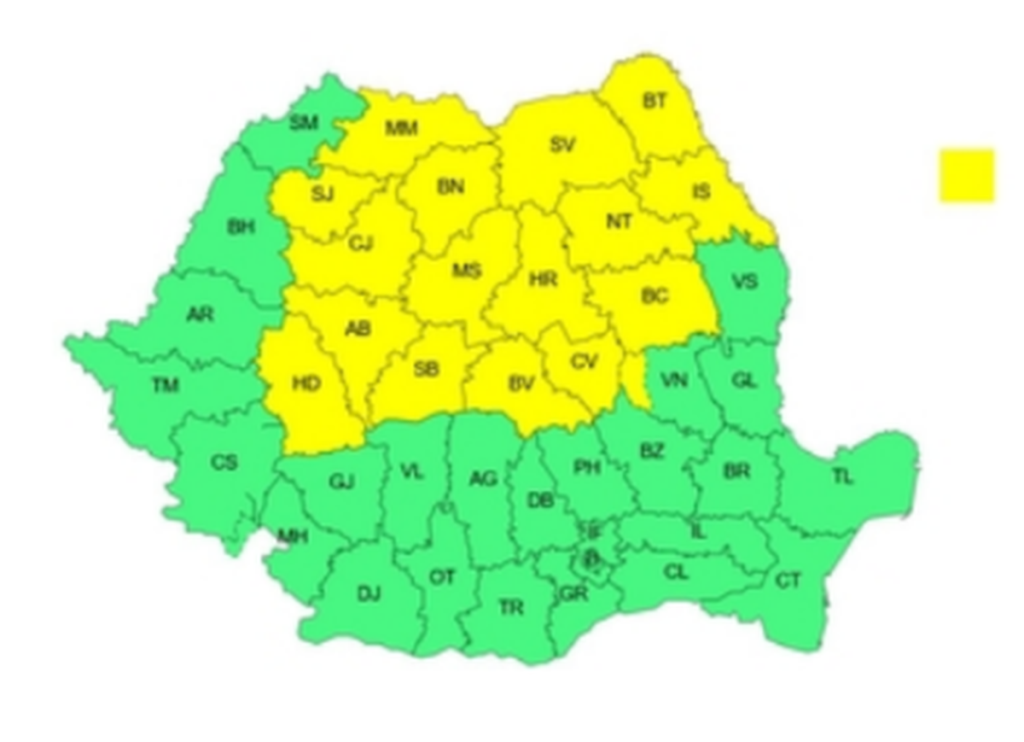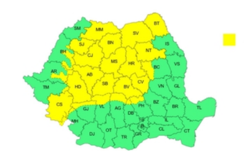 O altă avertizare de cod galben de căldură este valabilă sâmbătă, în același interval orar, în Maramureș, nordul Crișanei, sudul Banatului, cea mai mare parte a Transilvaniei, vestul și sudul Olteniei, sud-vestul și centrul Munteniei. Termometrele vor arăta între 33 și 37 de grade.