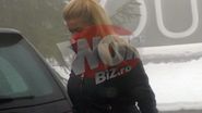 Imbracata corespunzator, in tinuta de iarna, pantaloni grosi si cojoc negru, blondina arata foarte bine la cei 42 de ani ai sai, astfel ca, a atras atentia tuturor celor prezenti la fata locului.