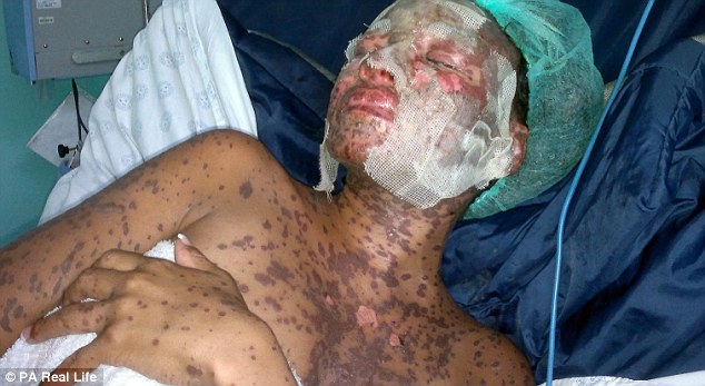 Reatia alergica a fost atat de puternica incat a ajuns sa arate in halul acesta si a stat internata saptamani in sir la terapie intensiva, scrie Daily Mail.