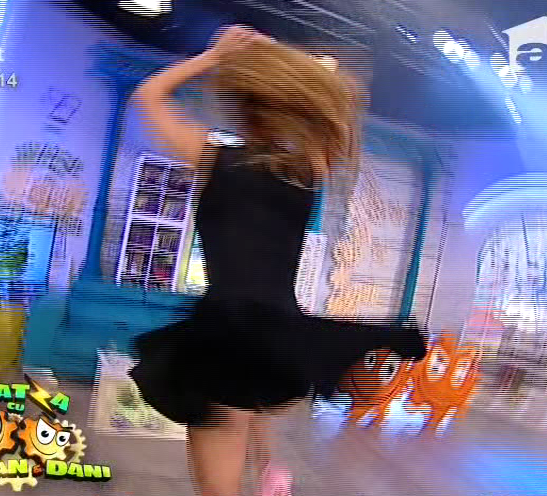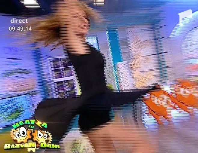 Flavia a purtat in aceasta dimineata o rochie neagra, extrem de scurta. Asistenta TV s-a dezlantuit pe melodia cantata de Mike Diamondz si cand s-a invartit, i s-au vazut boxerii in toata splendoare. La cat de bine arata blondina, miscarile sale nu aveau cum sa starneasca decat incantare. Iti place cum arata Flavia?