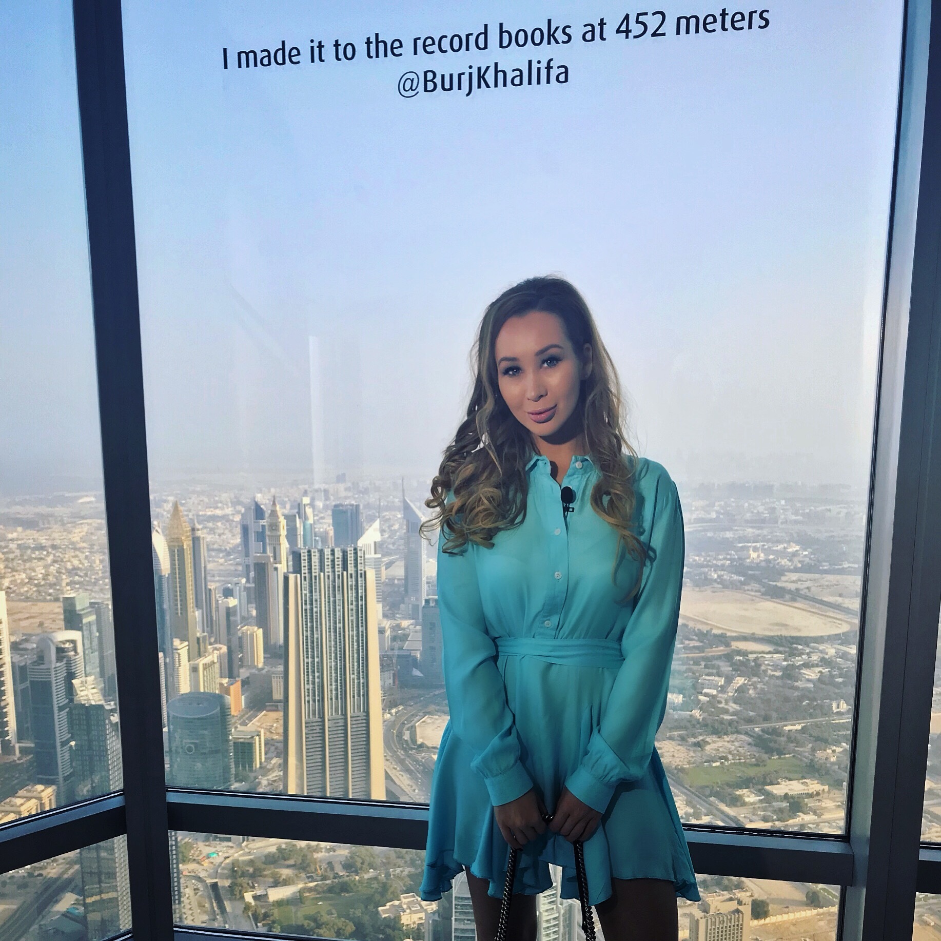 Artista nu putea rata o vizita la Burj Khalifa, binecunoscut deja de toata lumea. Cu o priveliste ce nu poate fi descrisa in cuvinte, a urcat pana la etajul premiat de Guiness World Records, 148, unde numai 1.000 de persoane pot ajunge in fiecare zi.