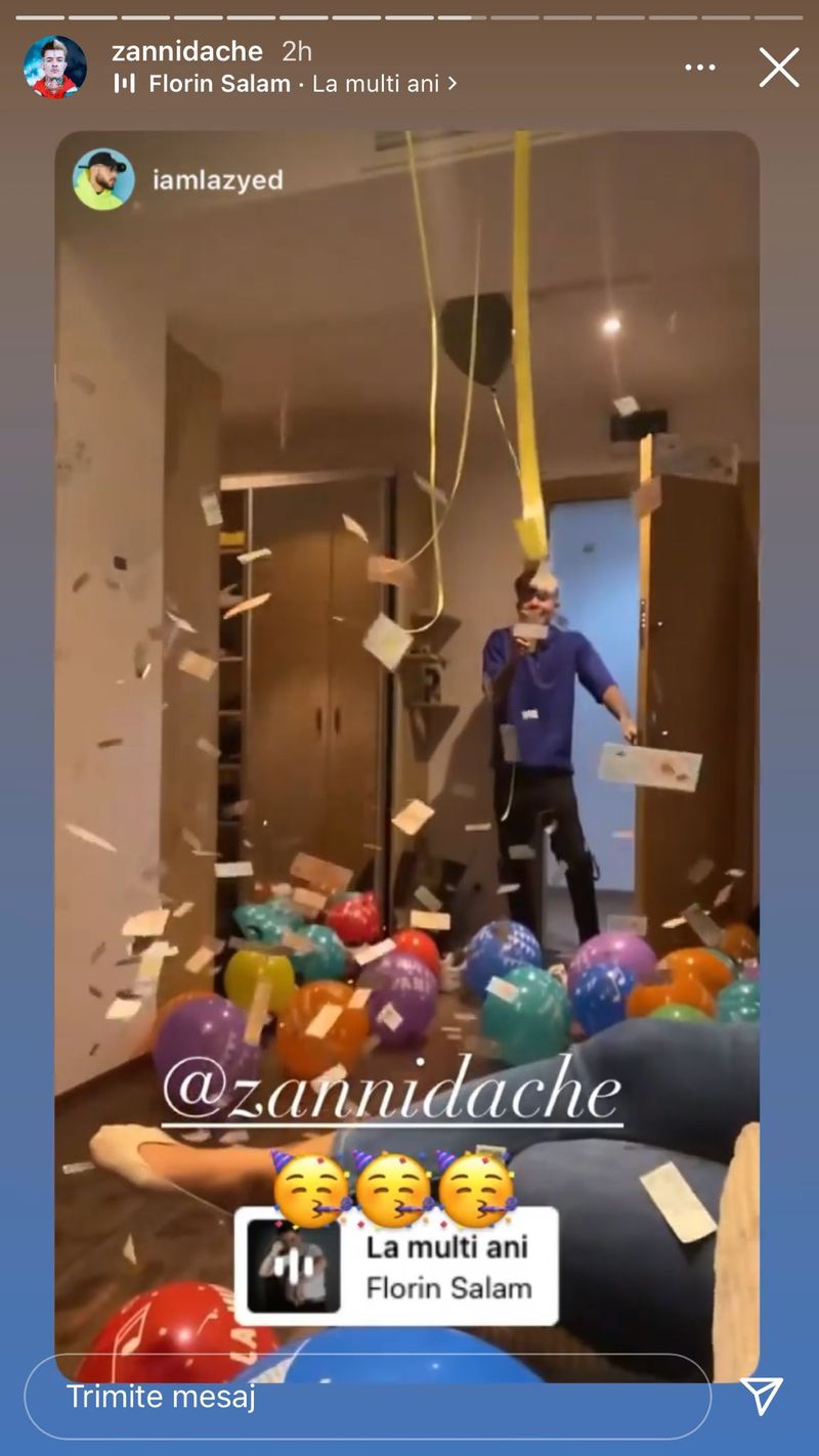 Zannidache a fost luat prin surprindere de cei mai buni prieteni ai lui, mulți din echipa Golden Boy Society a lui Alex Velea, care i-au pregătit o surpriză de proporții, chiar de ziua lui de naștere. Câștigătorul celui de-al doilea sezon al emisiunii fenomen, Survivor România, a surprins întreg momentul, care l-a emoționat foarte tare, după cum se poate vedea în imaginile de mai jos. Artistul și-a luat telefonul în mână și a filmat totul, încă de când a pășit pe ușa apartamentului.