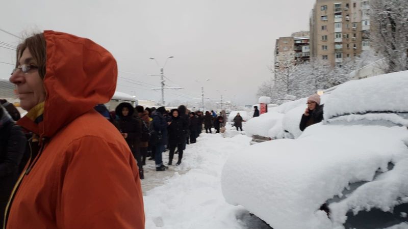 Mijloacele de transport în comun se deplasează cu dificultate, astfel că bucureștenii au fost nevoiți să meargă pe jos spre munca sau școală.