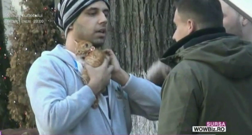 Paparazzii WOWbiz.ro l-au surprins pe Alex chiar cand il aducea pe unul dintre ei acasa. Sotul Oanei Zavoranu a coborat cu el in brate, i-a pus o zgarda simpatica, apoi l-a bagat sub hanorac, ca sa il incalzeasca.