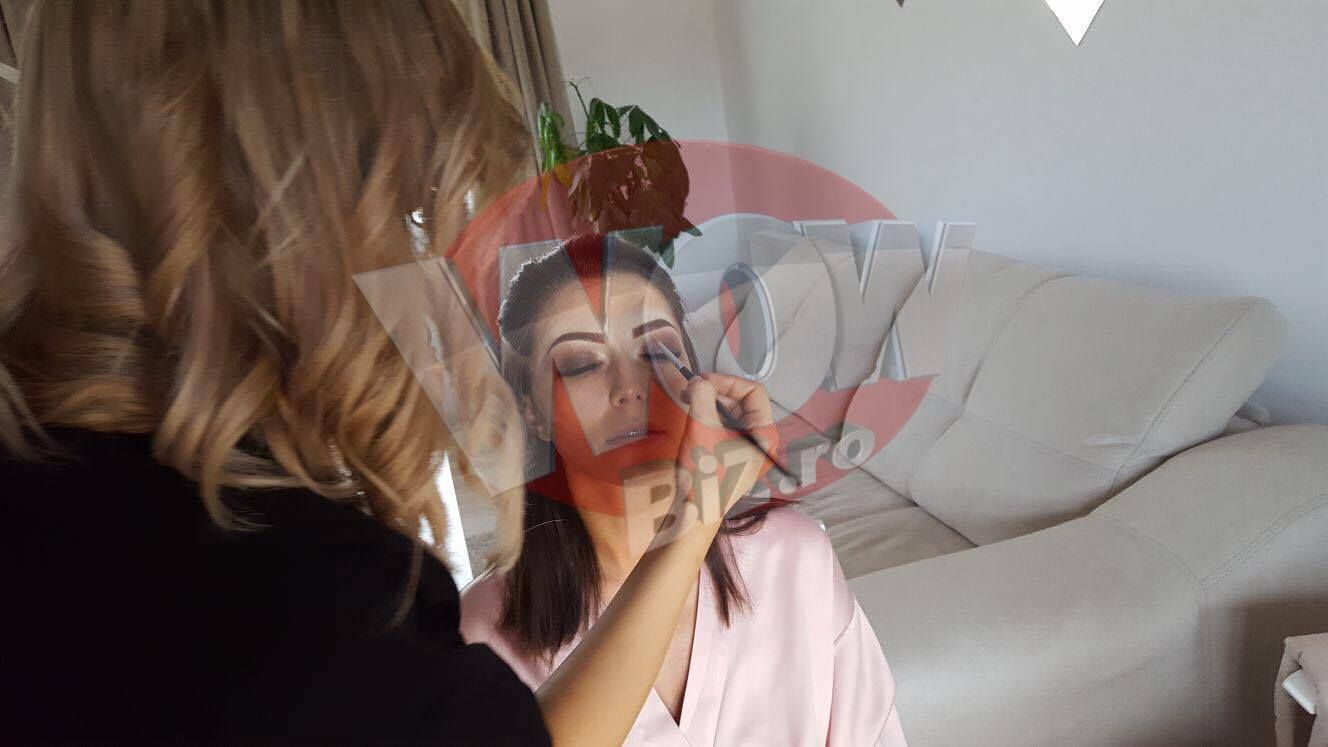 Ilinca este chiar acum pregatita pentru biserica. Este machiata si coafata de profesionisti, si vegheata indeaproape chiar de sora ei.