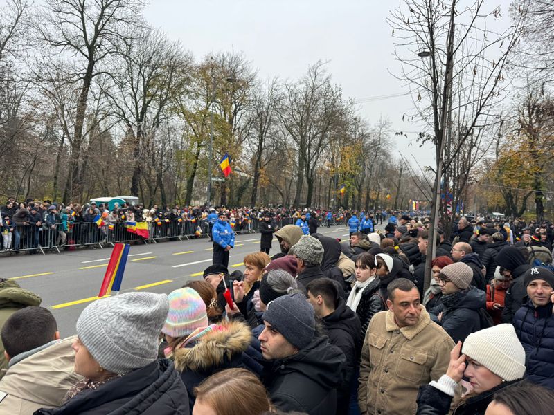 La ora 11.05, președintele Nicușor Dan a dat salutul tradițional, iar la 11.10, generalul de brigadă, Cornel Tonea-Bălan, a dat ordinul de începere a blocului de paradă. Defilarea detașamentelor militare și a tehnicii de luptă se va desfășura între orele 11:10 și 12:00, iar o mulțime de oameni s-au adunat în Capitală pentru a participa, cu tricolorul în mână și mult entuziasm.