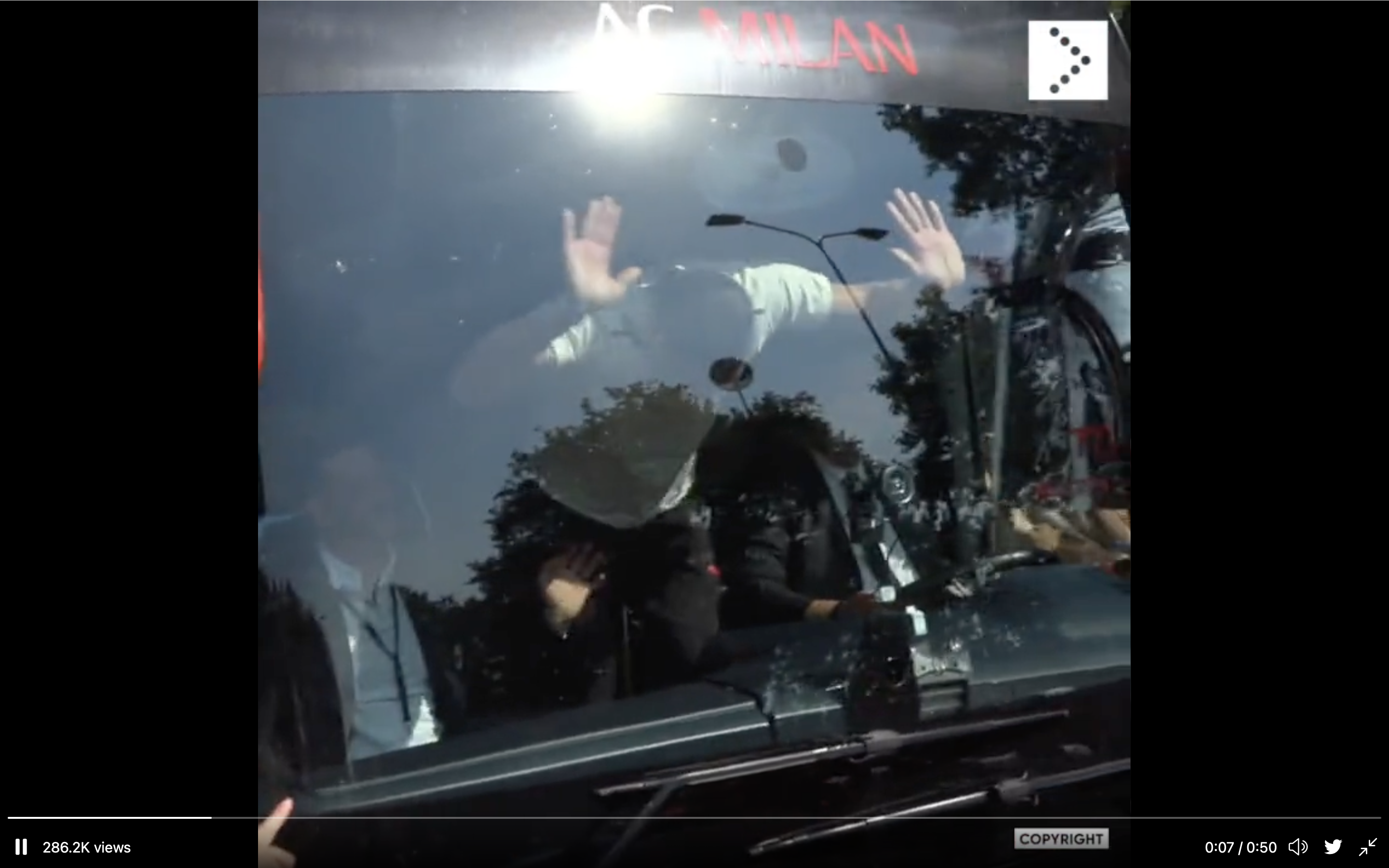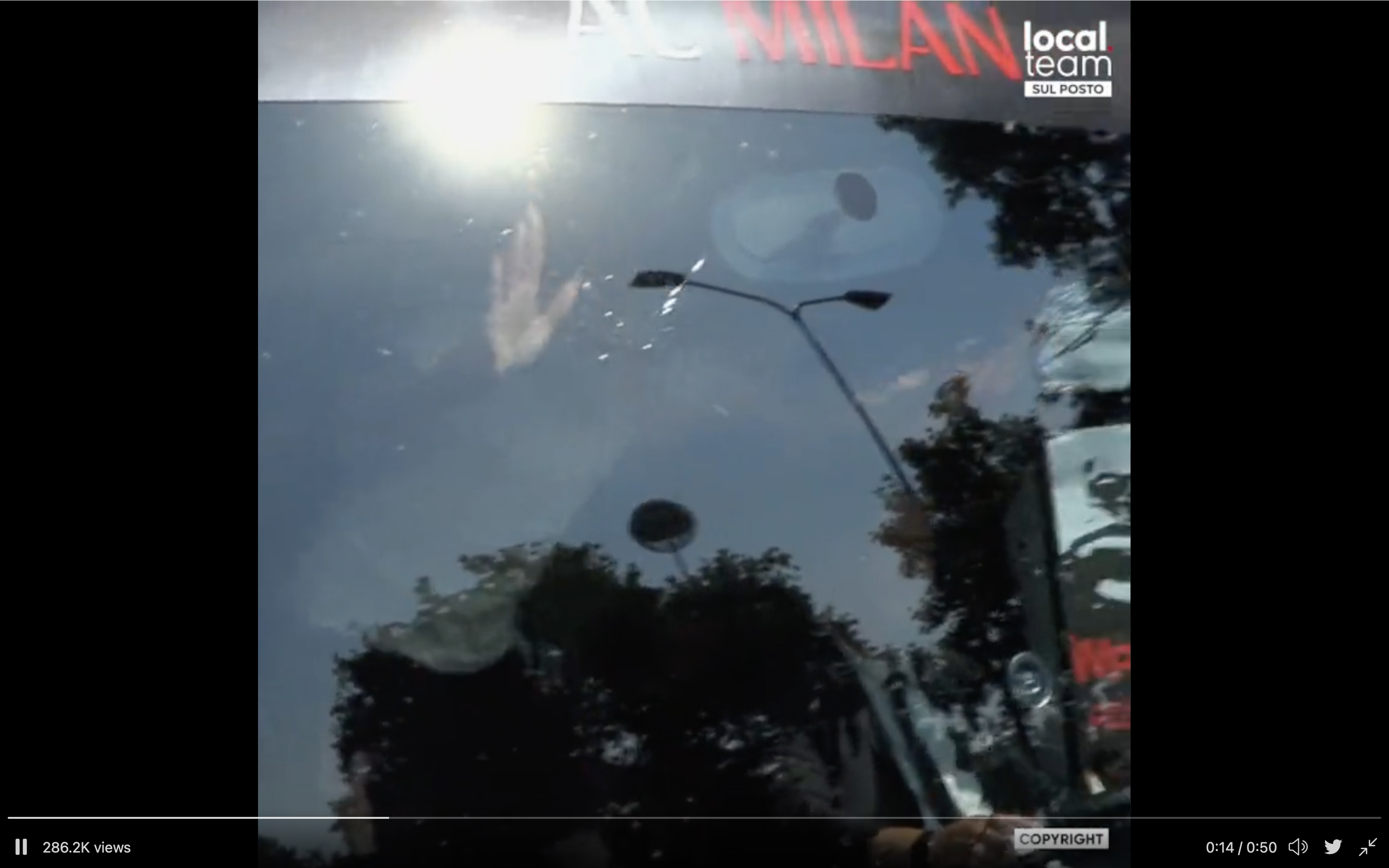 Trupa antrenată de Stefano Pioli a fost primită cu urale de sute de fani duminică seara, lucru care l-a făcut pe Ibrahimovic să trăiască un pic prea intens momentul. Suedezul s-a apropiat de geamul autocarului și l-a lovit de mai multe ori cu palmele. Atacantul lui Milan n-a reușit să spargă parbrizul cu totul, dar l-a crăpat suficient de vizibil, încât dauna a apărut și în înregistrările fanilor veniți la stadion.