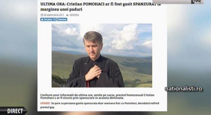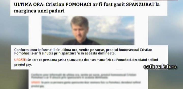 O stire falsa a ingrozit internetul. Ziaristii de la nationalisti.ro au scris despre Pomohaci ca s-ar fi spanzurat in padure.